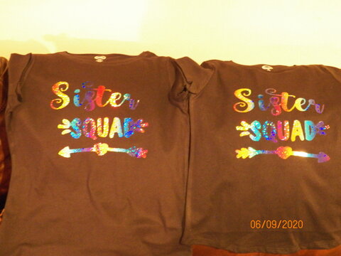 This item is a girl's black T-Shirt with the words Sister Squad on the front of the shirt with multi-color writing and Sister 01 & Sister 02 on the back. This shirt can be purchased for two girls. You can just specify how you want it in the comment section during checkout.
