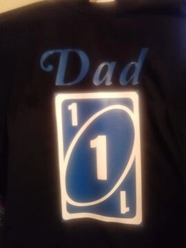 This is a man UNO T-Shirt with the word Dad on the front of the shirt. This shirt comes in black or white T-Shirt, just put your color in the comments section during checkout.