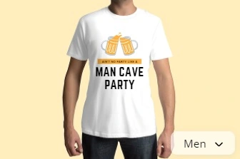 This item is a man white T-Shirt, with the words An't No Party Like A Man Cave Party. It has two beer mugs pictures on the front of it. You can also add your name to the back of it at no extra cost to you. All you have to do is type the name in the comments section in the checkout area.