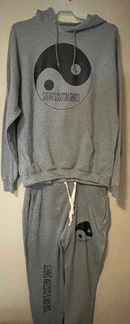 This item is a man jogger set with the Peace symbol in black. This jogger can be customize with your name or your own words inside the symbol. It comes in more than one color.